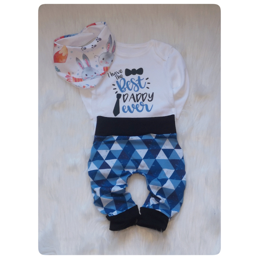 Kompletek je na voljo od velikosti 56 do 92. Za naročilo pošljite povpraševanje in napišite željeno velikost ter napis oz.ime, ki ga želite na bodiju. Vse ostale informacije dobite ob povpraševanju.